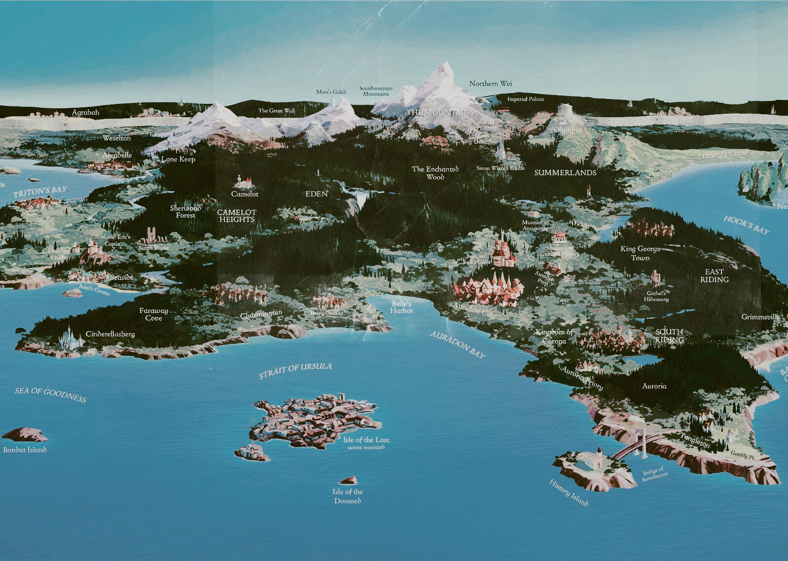 FΓ‘cilmente se la podrΓa catalogar como una prisiΓ³n que se encuentra ubicada en la costa, lejos de lo que serΓa Auradon y los demΓ‘s reinos porque un amplio y extenso mar los separa.
